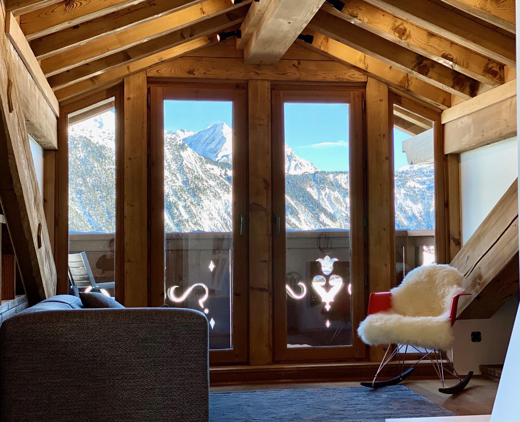 The apartment comfortably accommodates up to 6 guests across 86sqm. The stylish living spaces offers warmth and ambiance with big sofas, fire place and exposed beams whilst the two balconies offer wonderful panoramic views.