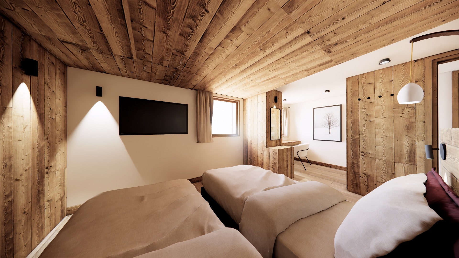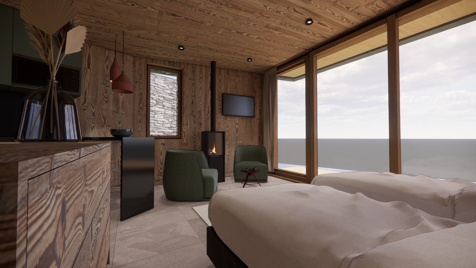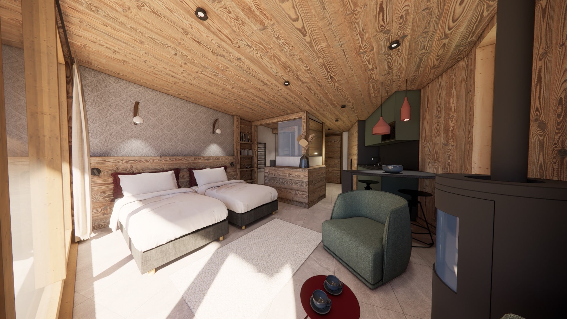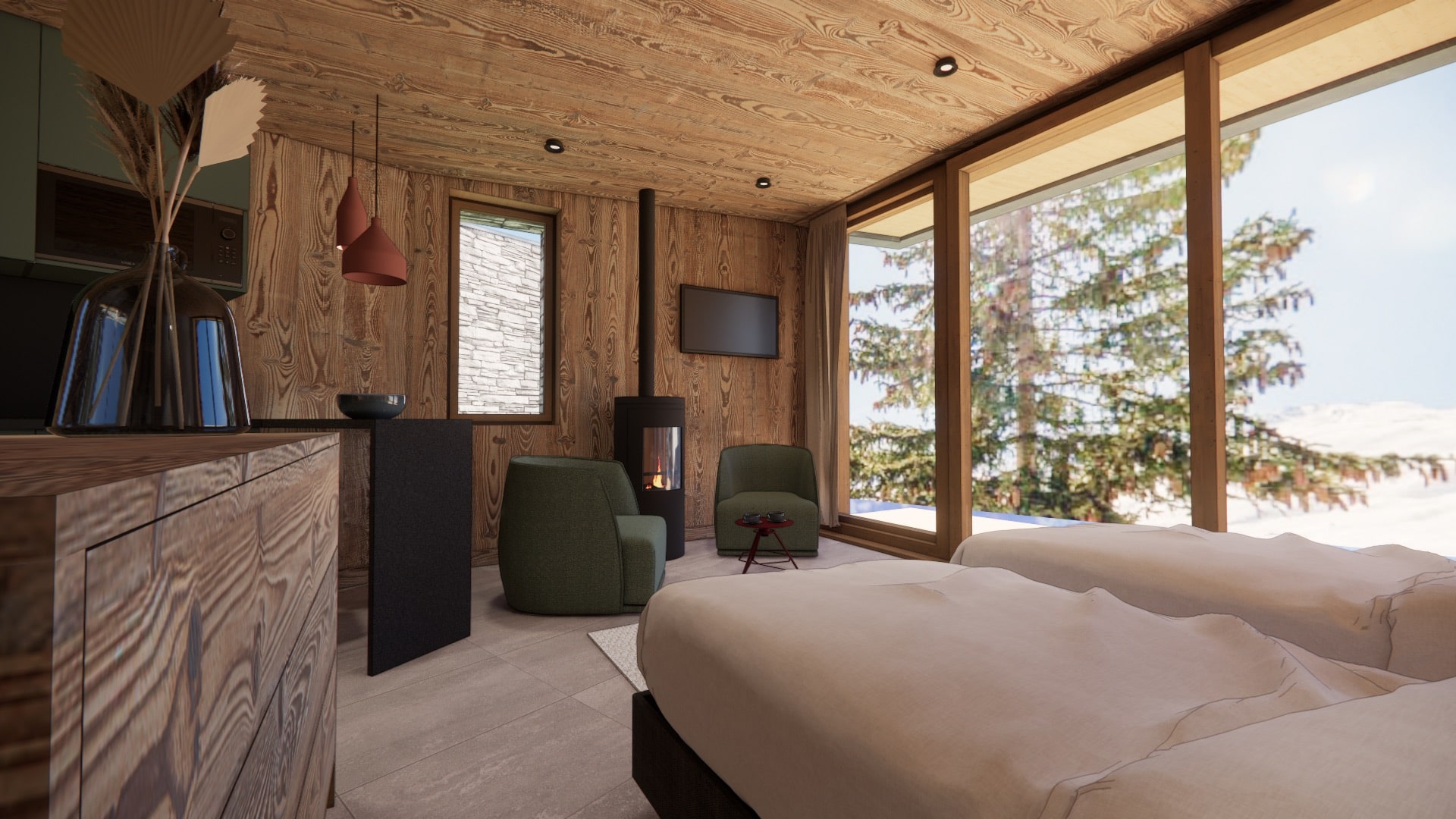 The transformation for the 2026/27 season will create 7 en suite bedrooms in the main chalet, along with 2 bivouak pods. Each self contained pod will have its own log fire, bathroom, and large window to soak in those amazing views.