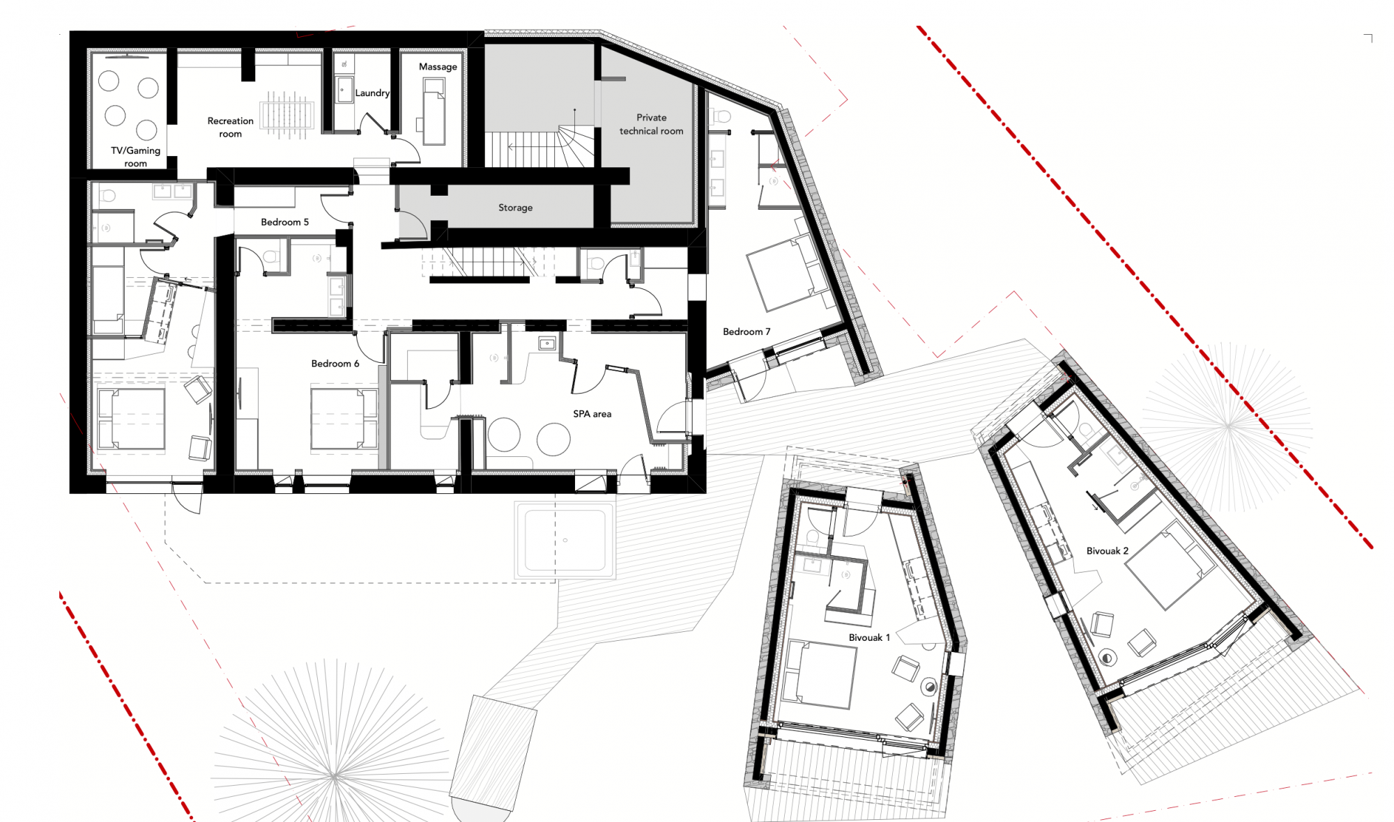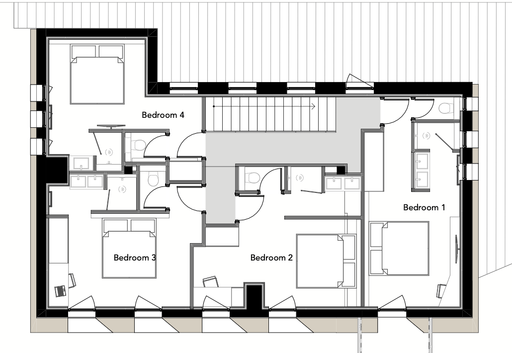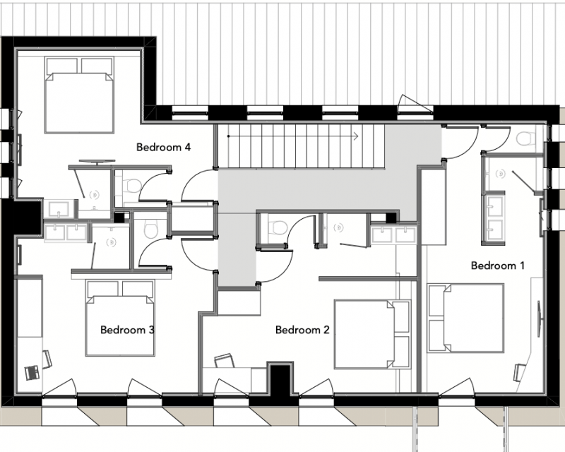 7 Bedrooms in the main chalet, all en suite