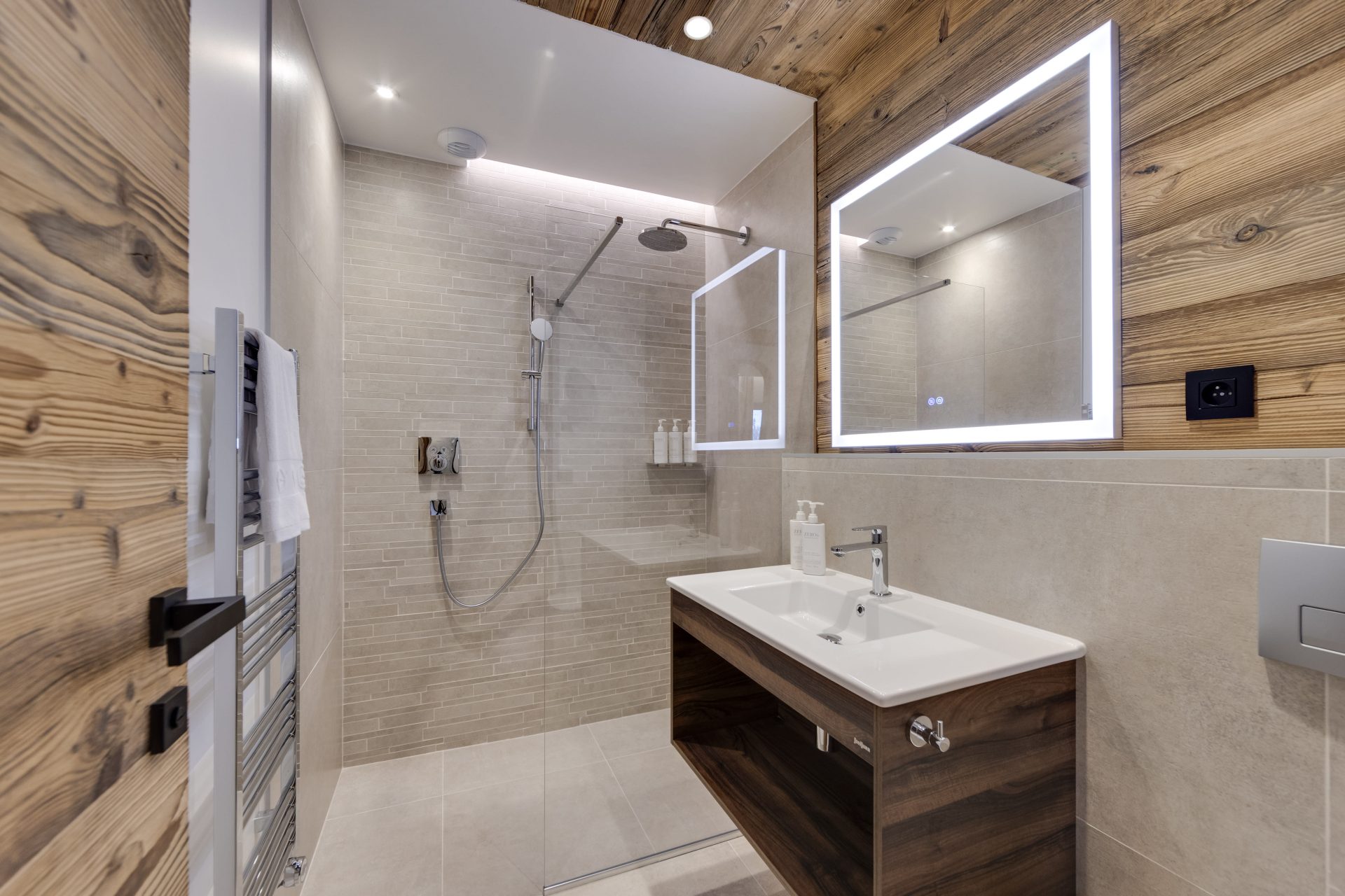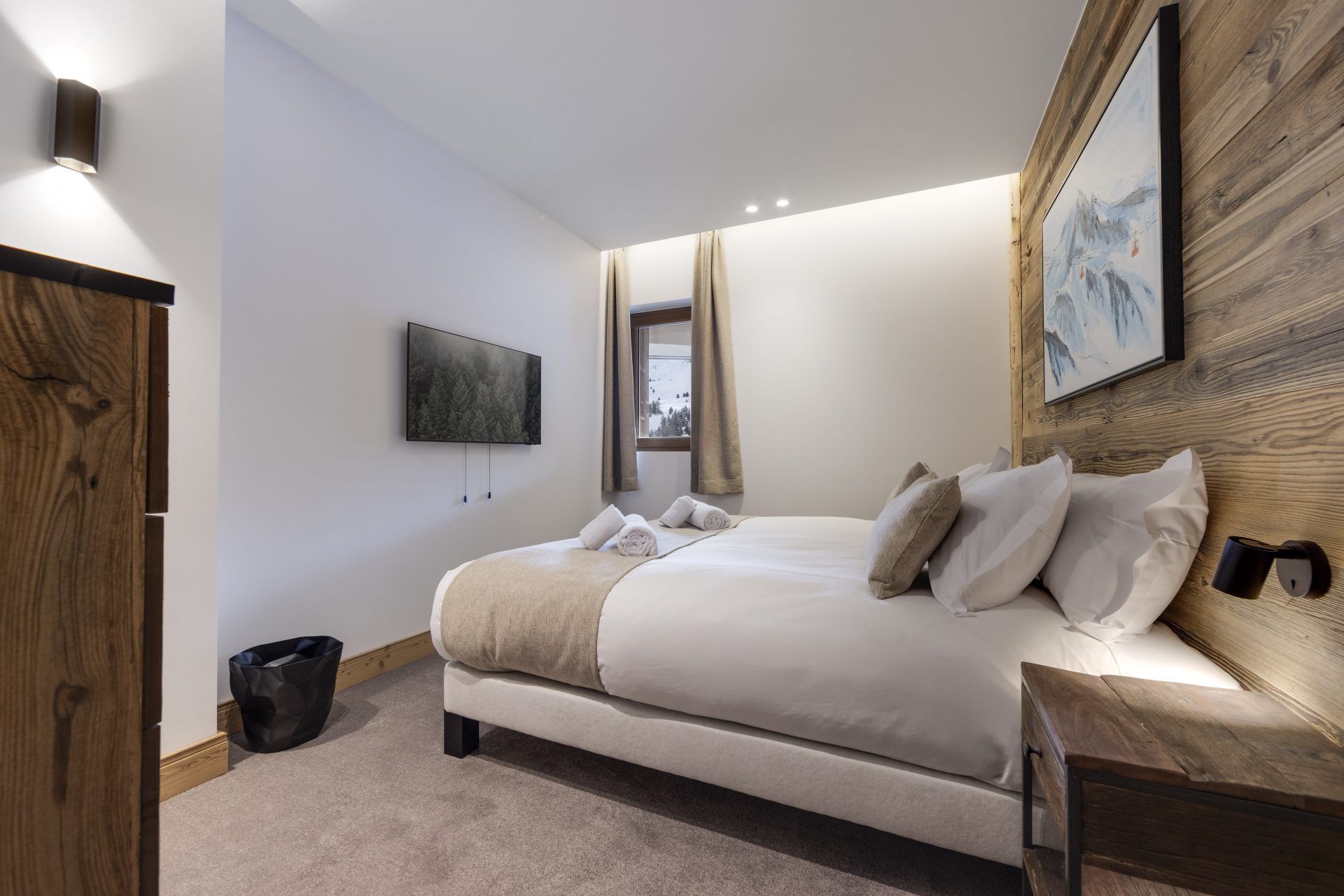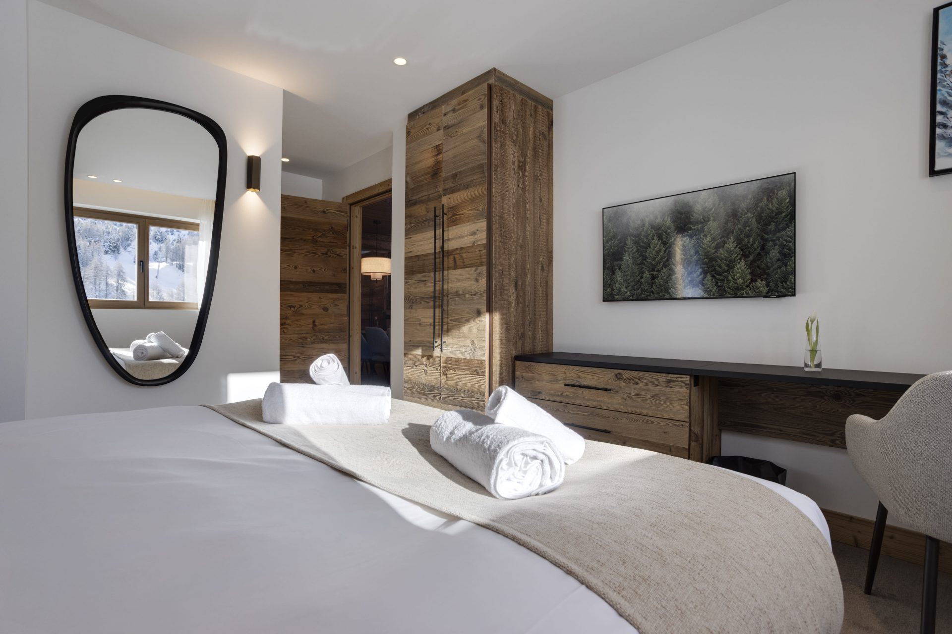 Each suite has been meticulously designed, with high quality interiors and mod cons, eco friendly fire place, comfy furnishings and all set to get the very best from the properties exceptional location. Large windows and good sized, well positioned balcony to show off the fabulous views across to Mont Blanc. The Eiger suite offers a particularly good children’s room with full sized bunks and a single bed.